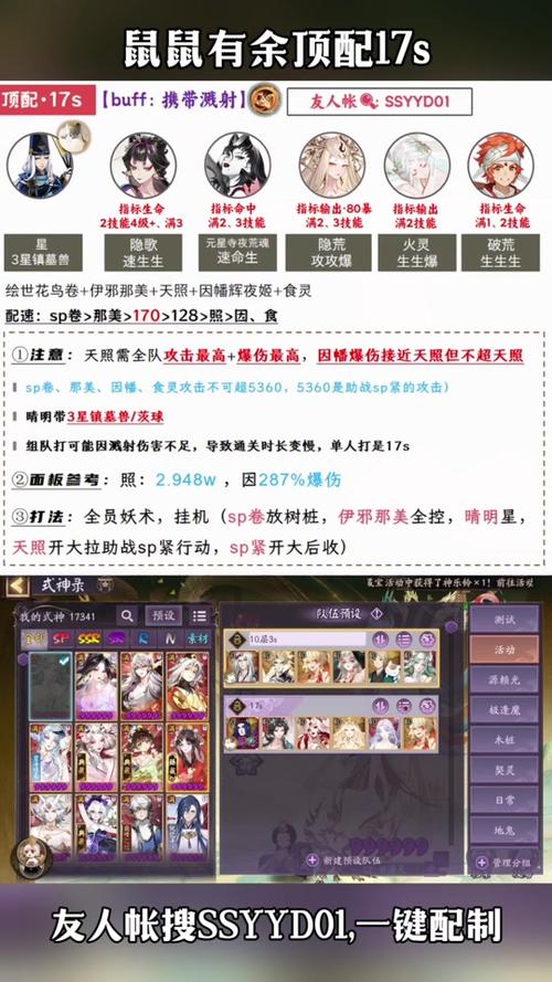 〖叁〗、对于希望快速通关的玩家,推荐以下最低配置的阵容:千姬、丑时之女、清姬、铃鹿御前和SP大岳丸。铃鹿御前和SP大岳丸可以根据个人情况替换为其他式神,以适应不同的战斗策略。