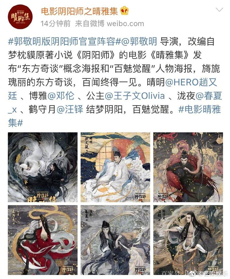 〖叁〗、郭敬明执导《阴阳师》的消息确认属实。郭敬明个拍的《阴阳师》是根据小说改编的,而华谊要拍的那版《阴阳师》则是根据手游改编的,两部作品并不一样。blob.png 7月26日,和和影业发布片单,其中出现郭敬明导演的新片《阴阳师》,授权方和编剧顾问是日本原著小说作者梦枕貘。