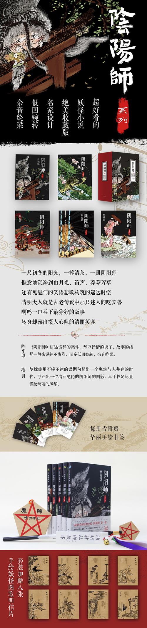 《阴阳师》系列小说,是以日本民间传说为基础的神怪小说,取材自《今昔物语》,以安倍晴明(阴阳师)、源博雅(武士)这两个主角为中心,展开一段段神奇的故事。梦枕貘以神秘古典又不失闲适的文笔构筑了当时独特的文化景象,更把安倍晴明塑造得有血有肉。