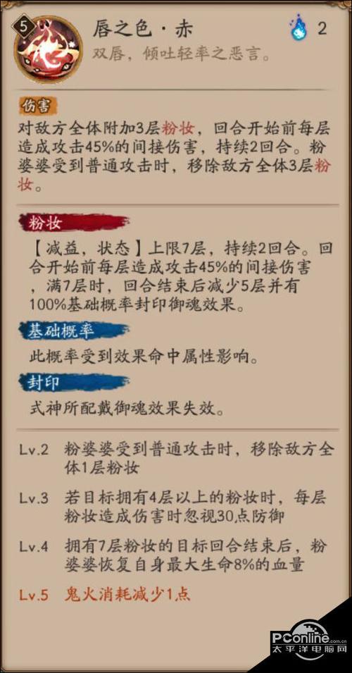阴阳师紧那罗技能介绍:- 序:攻击敌方,伤害随等级提升,比较高至115%,LV5会附加前一次弹奏的「律音」效果。- 破:回合开始弹奏两曲律音,触发不同效果,包括提升行动条、降低暴击伤害后转化提升暴击伤害、获得庇护、减少鬼火消耗等。- 宫·赤之霞:对敌方造成150%伤害并附加孤立效果。