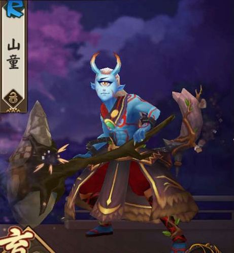 山童式神是一个r级式神,它最喜欢的食物是饭团。挥舞着大斧子,像一个蛮横的大汉,却喜欢饭团这种食物,是否有一点可爱呢。