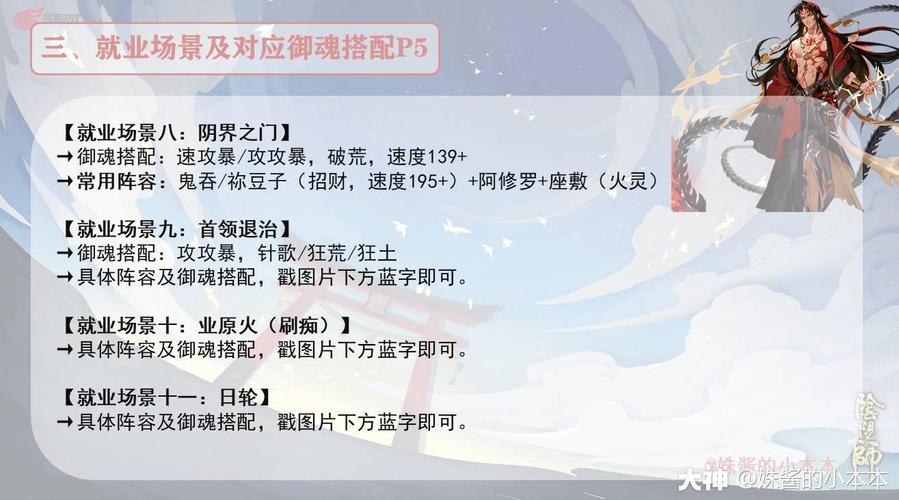 〖肆〗、天魔威压:阿修罗的被动技能,能够提供额外的伤害加成和效果。炼狱虐杀:阿修罗的主要输出技能,具有高额的伤害效果,并可能附带额外效果。综上所述,阿修罗作为《阴阳师》中的SSR式神,其强大的输出能力和广泛的就业岗位使其成为玩家们的首选。