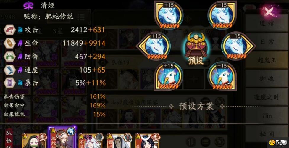 〖陆〗、第三套搭配如上图所示,它侧重于提高生存能力。通过选取相应的御魂,可以增加缚骨清姬的血量和防御力,使其在面对敌方攻击时更加稳固,从而在PVP对战中保持更长的战斗时间。总的来说,对于缚骨清姬而言,合理的御魂搭配能够显著提升其在PVP中的表现。