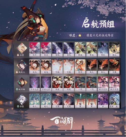 〖叁〗、阴阳师镰鼬副本第十层的攻略如下:首先,你需要一个合适的阵容。推荐的阵容包括高速一速木魅椒图、高速二速惠比寿、高速三速树妖桃花、针女AOE输出和针女单体输出。这个阵容能够提供足够的生存能力和输出能力,以应对镰鼬副本第十层的挑战。其次,你需要了解每一回合的敌人类型和特点。