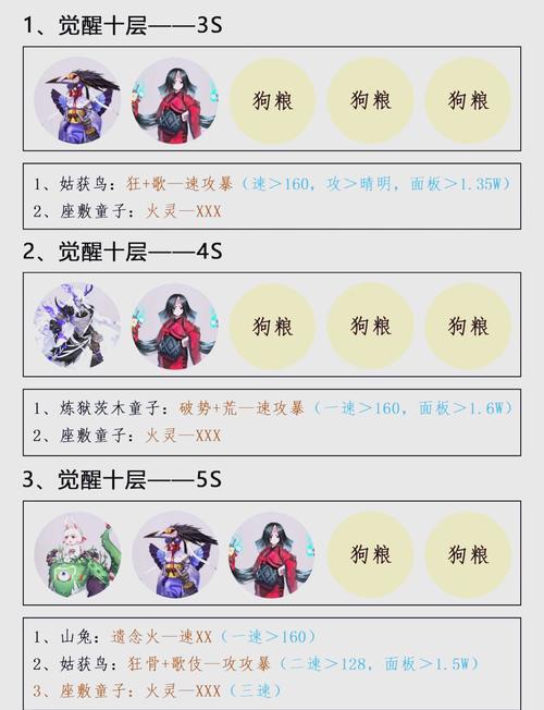 〖壹〗、推荐阵容为:不知火、食灵、帝释天、sp姑姑、sp荒。配速无需特别关注,可设置为低速。御魂配置如下:不知火,火灵,攻攻暴满暴;食灵,涂佛,攻攻攻;帝释天,散件,攻攻攻;sp姑姑,轮入道,攻攻暴满暴;sp荒,针歌,攻攻暴满暴。