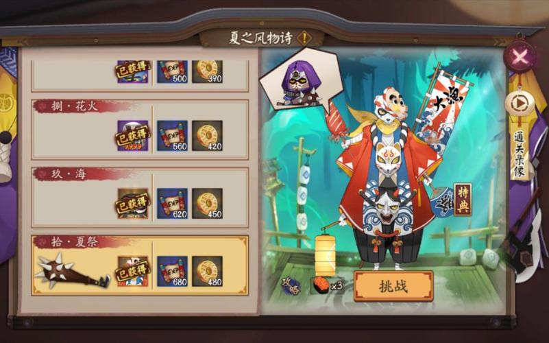 挑战条件通关原秘闻副本夏之风物诗第十层。副本机制:两个无敌鬼面一个让对方回合中无敌,一个是对我方全体造成少量伤害,并有大致40%的几率减火。(1次大概少1-4点)彼岸花基本无效,犬神也会因为镰鼬的人多势众和众多镜姬效果比如之前那么明显,不过依旧可以一战。