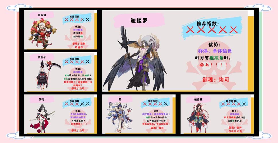 酒吞童子 酒吞童子位列阴阳师中顶级输出式神,是强大的单体输出式神,不耗火是其最大优势,抗打能力充足,全能型。玉藻前 玉藻前堪称年度最引人瞩目的式神之一,单体攻击伤害极高,但作为纯输出式神,使用技能时需消耗三点火焰。阿修罗 阿修罗爆发伤害惊人,输出能力超群。