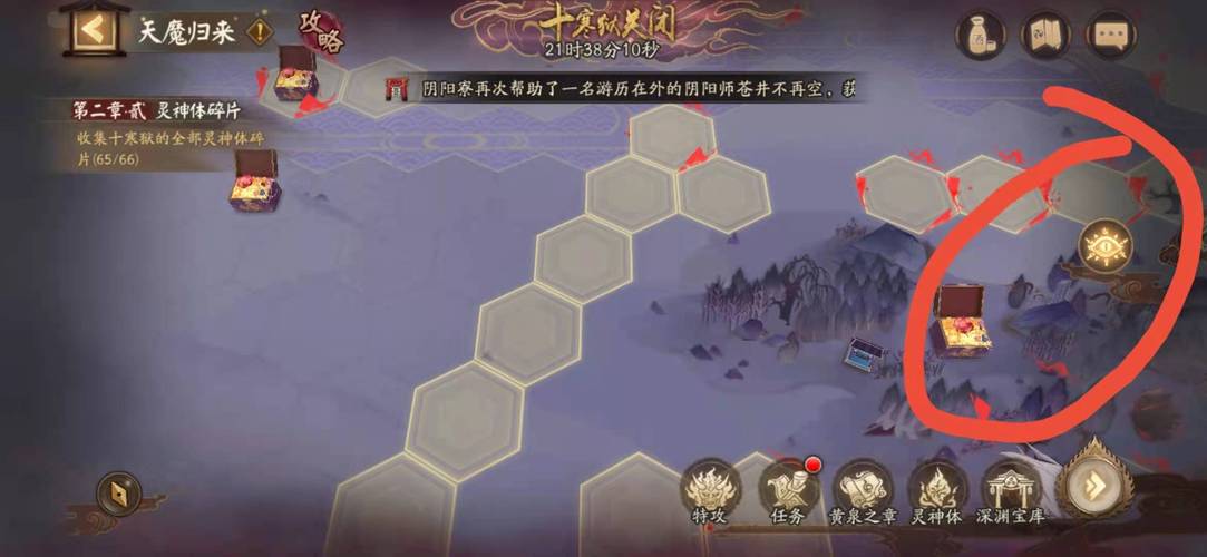 阴阳师深渊捐赠的位置及收益介绍如下:深渊捐赠位置:在天魔归来活动中,深渊捐赠位于地图上的各个格子中。具体找法:首先,点击地图右边的【眼睛】标识,将其关闭后,格子上就会显现出各种玩法标志。接着,找到圆形的【捐赠】标志并点击即可进入。