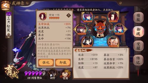 总结:久次良作为一个集输出、护盾、治疗为一体的式神,破势或招财都是非常适合他的御魂选取。速攻暴的属性搭配能够最大化他的输出能力,让他在战斗中发挥更大的作用。同时,根据战斗的需要和队伍的搭配,玩家也可以灵活调整久次良的御魂和属性。