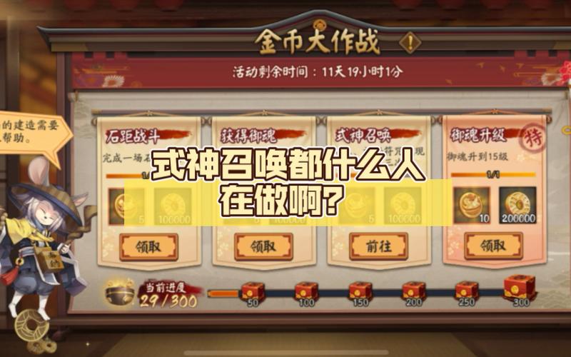 阴阳师金币金币副本活动玩法介绍活动时间金币大作战活动持续14天。活动任务今日的四个任务分别是石距战斗、完成悬赏、式神召唤和一个特别任务(包括御魂升级、秘魂屋购买御魂等。任务攻略石距战斗和完成悬赏都比较好完成,只是刚更新完可以排队打石距的人会比较多,痒痒鼠们可以稍微错开一下时间。