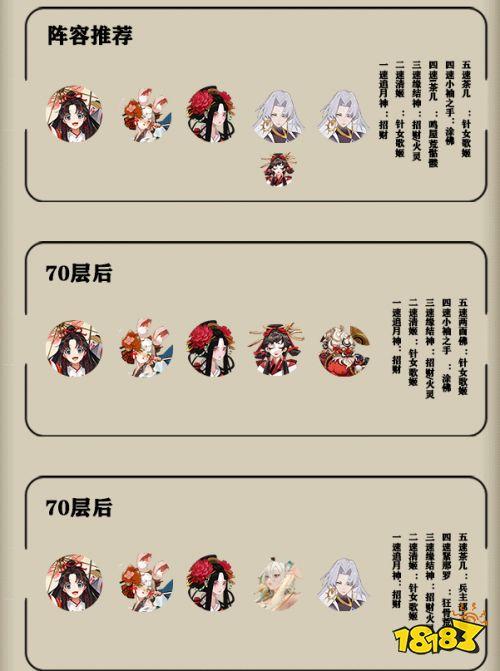 清姬+丑女+追月神+AOE 推荐搭配:针女歌姬清姬+狂荒丑女+招财追月神+招财缘结神+鸣屋荒骷髅大舅妈;又因为只需要打50层,所以,缘结神你可以用其他增伤,如薰、久次良等,都可以;大舅妈可以用茶几,甚至天狗,前面几十层很脆的。