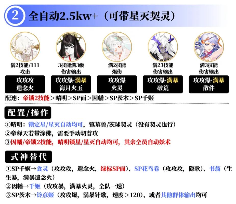 然后点选带掉落加成(红达摩)BUFF的怪(此buff意味着可能增加1个掉落),没有就退出重新进;过程中如果获得了突破券满30张时,即可先清理突破券,然后再继续刷,突破券也是可以掉落碎片的还能赚勾玉。阴阳师阵容推荐:最强阵容一:星熊童子+不知火+鬼王酒吞+千姬+sp荒川。