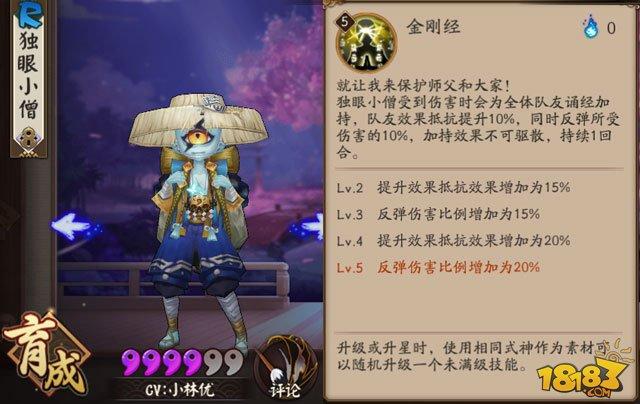 〖贰〗、独眼小僧是木鱼化成的妖怪,是《阴阳师》中的一位R级式神。独眼小僧的核心技能就是金刚经,当自身受到伤害时给全队加一层持续一回合的人反伤护盾(20%),并且提高20%抵抗。《阴阳师》是由中国网易移动游戏公司自主研发的3D日式和风回合制RPG手游。