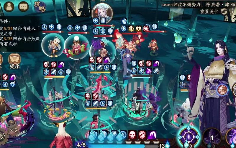 〖贰〗、三段的流程较为复杂。首先,妖琴师通过技能将八岐大蛇拉向鬼切,再普攻不知火。接着,一目连和辉夜姬直接释放大招。随后,神乐拉八岐大蛇,大蛇同样使用大招攻击日和坊。下面,妖琴师再次拉八岐大蛇,大蛇拉辉夜姬,辉夜姬开大招。随后,妖琴师拉八岐大蛇,大蛇普攻日和坊,辉夜姬再次开大。