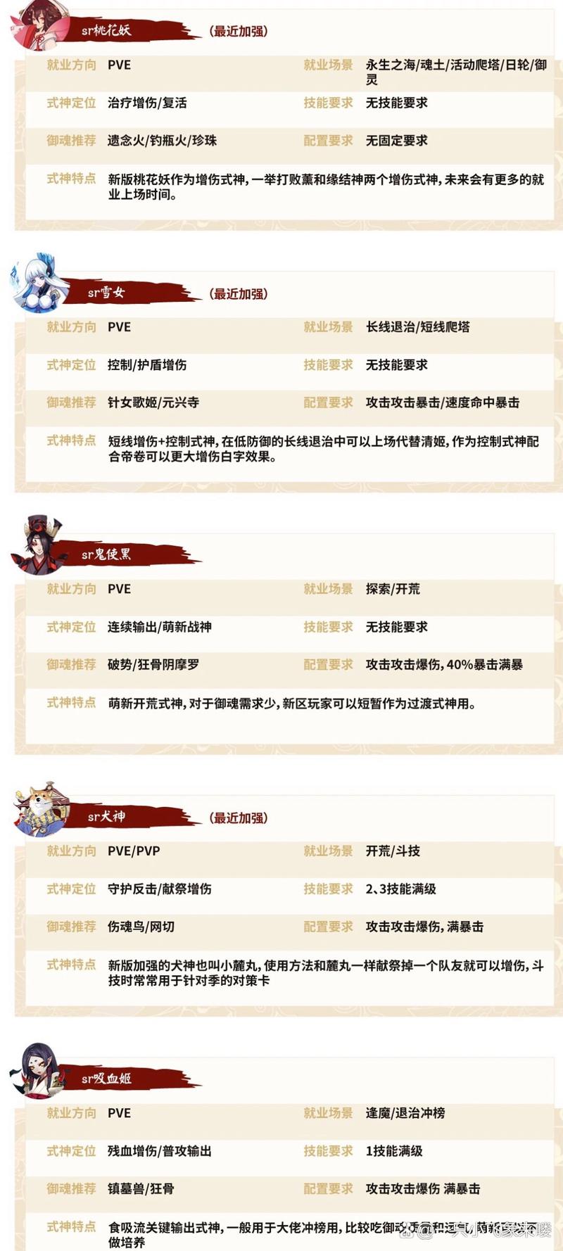暴击需求:冲榜或补伤害时,可以考虑满暴击暴击伤害。命中抵抗:常规辅助使用丑时之女时,建议4号位配置命中属性,同时副属性也堆上命中,以增加下咒增伤效果。提示:PVE模式下的必练式神,封魔日常及大型活动中都会频繁使用。建议准备一个5星及以上满技能的丑时之女以及一个觉醒状态的狗粮丑时之女。