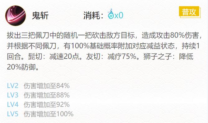 〖叁〗、根据战斗需求,可以考虑搭配针女、狰或骰子鬼等御魂,以适应不同的战斗环境。鬼切,Onikiri,是日本平安时代的名刀之一,源满仲保卫天下的两把名刀之一。它与另一把名刀膝丸配为一对,具有独特的攻击方式,一刀攻击面门,一刀攻击膝盖。