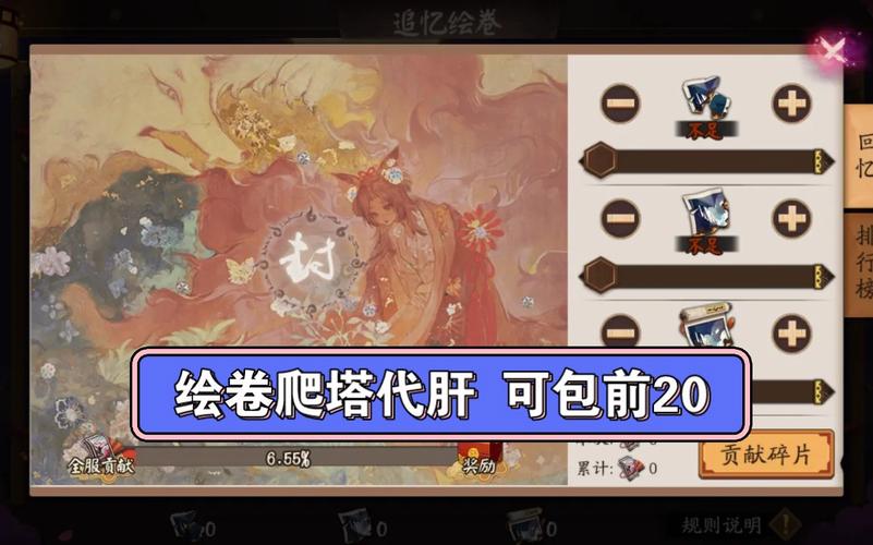 要在阴阳师中快速刷绘卷,可以遵循以下几点策略:选定绘卷:确定好你要投入的绘卷,并将所有资源集中到一个绘卷上。对于非氪金玩家,建议避免选取第9绘卷,因为这些绘卷竞争激烈。根据服务器情况,选取中间解锁的绘卷,如5绘卷,较为合理。捐碎片策略:不要一口气捐出所有碎片,留一些底。