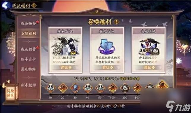 每个角色可携带一个SSR/SP,一个SR,一个R式神,比较多有三个角色可以进入游戏。游戏开服后,点击右上角邮箱即可领取预约的式神。若玩家在开服后的10天内登录游戏,系统将自动赠送三个预约的式神,前提是玩家必须先进行预抽,并选取携带三位式神进入新区。所赠送的式神即为玩家选定携带的三位。