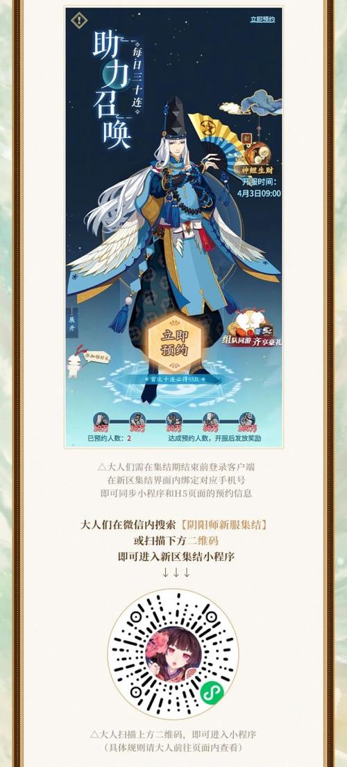 在新服集结期间,玩家可以通过登陆入口点击新区预约。随后会进入一个新界面,玩家在这里可以预抽式神,每天有10次机会。抽到的式神可以在新区开区的10天内,于创建角色时进行携带。