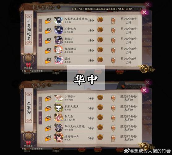 〖贰〗、针对难度较高的地域鬼王,需要采用特定的翻山阵容。这种阵容通常更加注重控制效果,以及针对特定BOSS的技能进行克制。翻山阵容中可能需要包含一些具有特殊技能的式神,例如能够驱散BOSS增益效果或降低BOSS防御的式神。配速技巧:配速在地域鬼王挑战中至关重要。