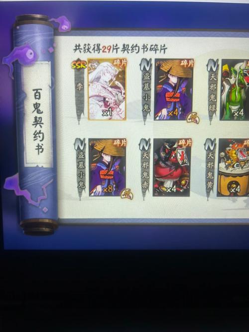 〖壹〗、捡到的碎片积累后可以换完整的式神。玩家在活动时期去撒百鬼,撒到碎片的几率比较高,积累到一定数目碎片后可以兑换高级式神。邀请好友会提高撒百鬼的几率,玩家可以邀请一些等级比较高的好友,这样出现SSR式神的几率比较高,玩家才有机会撒到SSR的碎片。在百鬼夜行中有一个buff叫做概率。