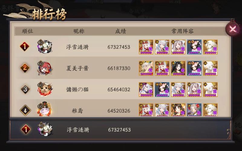 阵容推荐 配速:袖岚、缚源赖光170速丑离核心技能:源赖光使用“征夷神威”技能御魂搭配 小袖:速度:一速,越快越好,确保不断针线且多触发协战。御魂:开局普攻后锁定2技能。小山风:速度:高速。御魂:轮入道+胧车,有胧车最优,全程普攻,绿标套盾保护不知火。缚姬:速度:高速。