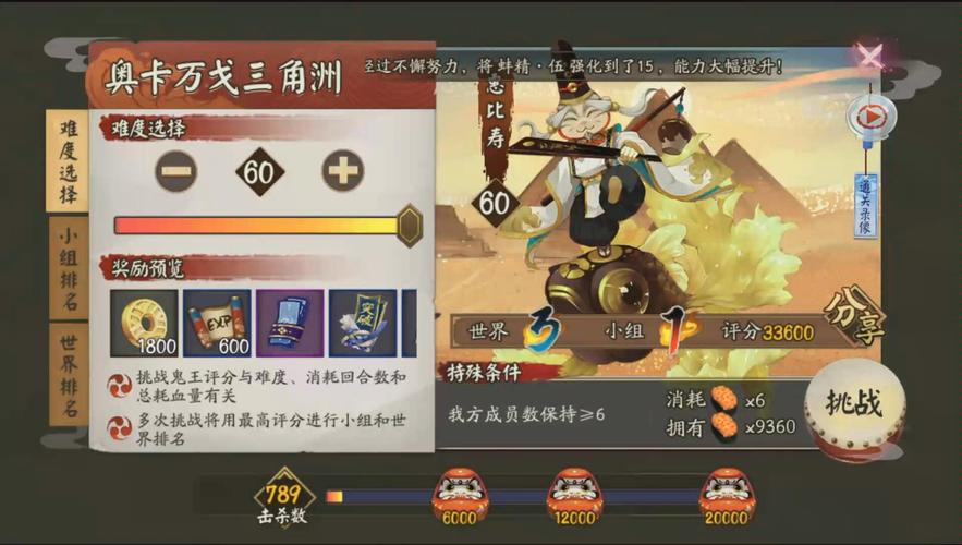 在《阴阳师》游戏中,玩家达到2000声望后,便能每天挑战两种不同地域的鬼王。这一声望等级的提升不仅允许玩家在每天的挑战中获得更多奖励,还可以将这些地域鬼王的奖励翻倍。当玩家声望累积至10000时,更进一步,可以挑战三种地域鬼王,享受更丰富的游戏体验。