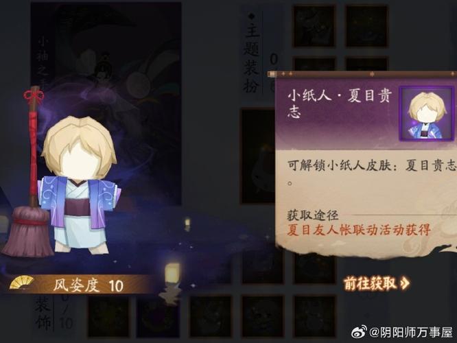 〖伍〗、在阴阳师中,更换小纸人皮肤的方法是通过游戏内的纸人神社功能进行选取和更换。详细 阴阳师是一款深受玩家喜爱的日系风格手游,游戏中的角色和界面设计都充满了和风元素。小纸人作为游戏中的一种特殊存在,不仅可以协助玩家进行各种日常任务,还拥有多款可爱的皮肤供玩家选取。