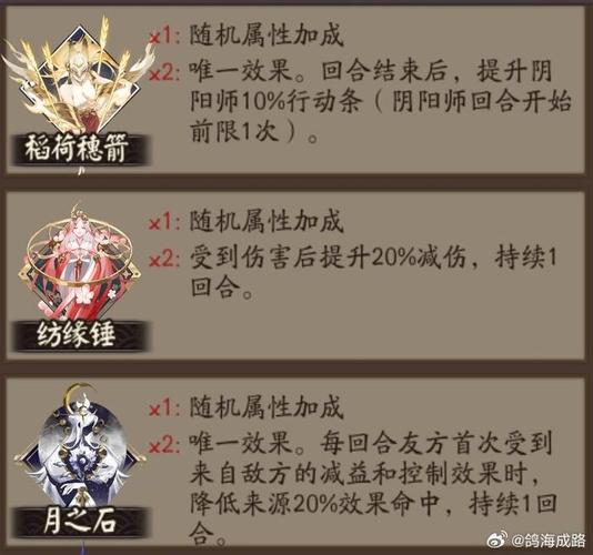 〖叁〗、在《阴阳师》中,“效果命中”指的是友方式神施加负面效果(debuff)时的成功几率,这关系到式神控制敌人的能力。 效果命中是《阴阳师》中的一个攻击属性,它并不直接增加式神施加debuff的成功率。