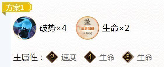 〖肆〗、御魂搭配建议 推荐使用四件套:狂骨、心眼。破势御魂两件套:命中加成、暴击加成。2号位配置为生命加成、速度、攻击加成。4号位配置为攻击加成、效果命中。6号位配置为生命加成、暴击加成、暴击伤害。首领御魂选取荒骷髅、鬼灵歌伎。