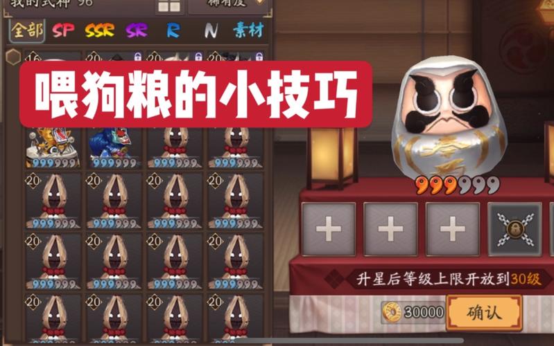 〖肆〗、阴阳师狗粮的喂养方式主要是将不需要的式神或达摩作为材料,用于提升其他式神的等级或技能。具体来说,狗粮式神通常包括N卡式神以及达摩蛋。红达摩,即招福达摩,是经验加成的主要来源,其提供的经验值高于普通N卡式神,因此常被优先用于喂养,以快速提升目标式神的等级。