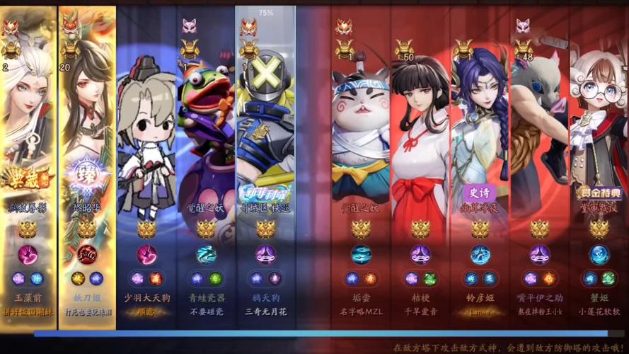 阵容配置:鬼切、兔子、琴师、辉夜姬、妖琴师、神乐。这套阵容是依据2022年的斗技t0标准构建,以鬼切为核心输出,利用其快速释放大招的特点进行一波流战术。 速度搭配:阵容中的速度配置为兔子-琴师-琴师-辉夜姬-鬼切-神乐。