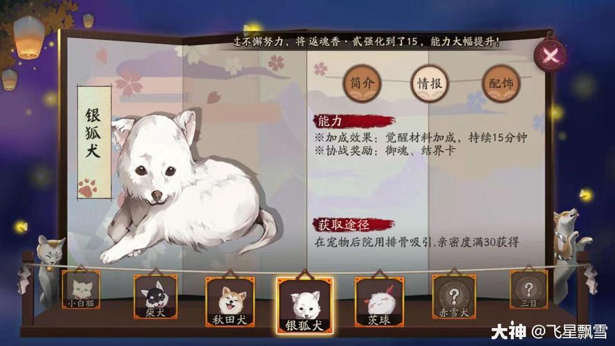 秋田犬。在游戏阴阳师里面根据种种测试宠物秋田犬的跟随奖励是比较好的,该宠物由于自己的独特被动和特权协战奖励深受玩家喜欢。