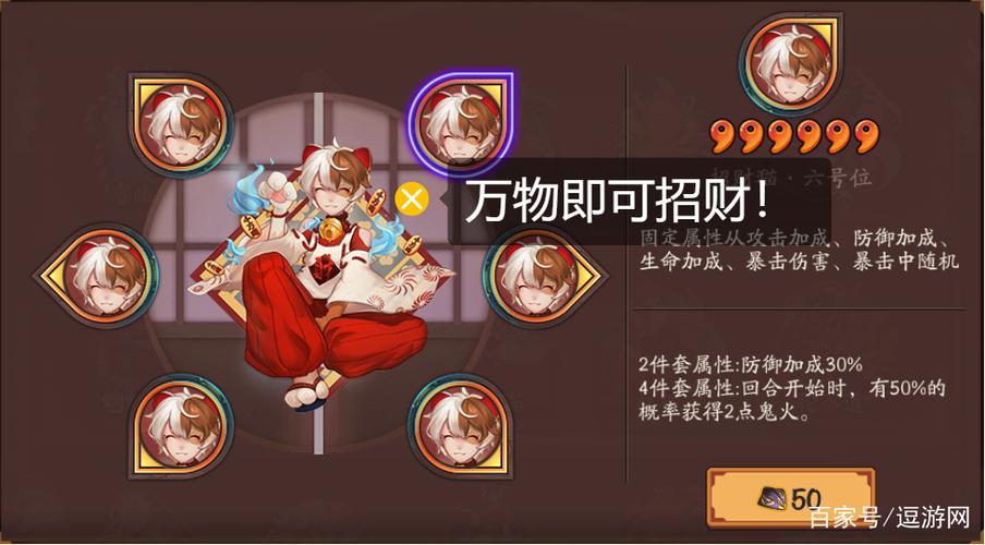 〖叁〗、阴阳师中的海月火玉御魂备受玩家喜欢,其独特的两件套和四件套效果显著。两件套能够提升15%的暴击率,而四件套则在鬼火或愿力充足的情况下,使伤害提升至40%。无论是两件套还是四件套,都能有效增加战斗中的伤害输出。在实际使用中,玩家可以根据战斗需求灵活选取。