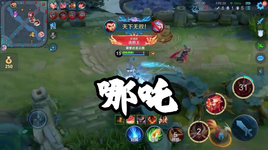 除了清兵和防御外,哪吒还需要时刻留意地图上的动态,准备支援队友或参与团战。他的大招“乾坤·万里齐征”可以全屏传送至敌方英雄身边,造成范围伤害并减少其移动速度,非常适合用于追击或分割战场。然而,在使用大招时需要谨慎,避免被敌方英雄反制。