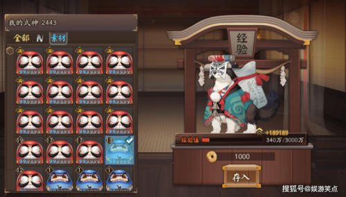〖叁〗、功能开放条件:阴阳师等级达到40级。功能位置:【式神录】打开底部育成,界面的右下角就是暴食鬼。大人们可消耗大吉达摩、招福达摩、N阶式神以及对应的金币,向「暴食鬼」内存储式神经验,以供键育成系统使用。新增「经验手札」道具。大人们消耗经验手札及对应的金币,亦可向「暴食鬼」内存储大量式神经验。