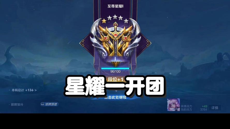 晋升王者:当玩家达到至尊星耀I五颗星后,再赢得一局比赛即可晋升到王者段位。因此,从星耀V打到星耀I,再从星耀I五颗星晋升到王者,总共需要25颗星星。