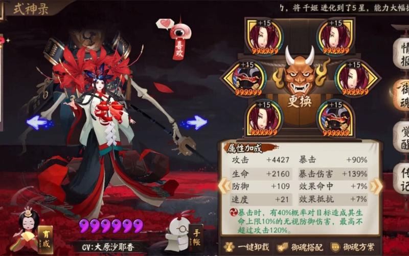 〖伍〗、御魂推荐分为两种方案。方案一使用伤魂鸟×4,暴击×2。建议2号位为攻击加成,4号位同样为攻击加成,6号位选取暴击或暴击伤害。方案一适用于结界道馆和日轮之陨等情况,推荐伤魂鸟,阵亡单位后获得治疗伤害提升,效果显著。方案二则选取针女×2,暴击×2。
