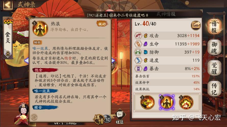个人感觉这个式神更适合融入到中速队伍中,作为优秀的共潜御魂的携带者来辅助队伍,应该不错。阴阳师ssr食灵值得培养,理由如下: SSR食灵的核心能力就是链锁反应,闭环类型的技能组,回合外的强力增伤高达50%,以及赋予的协战能力。协战能力和回合外的攻击完美搭配产生了绝妙的发酵和反应。