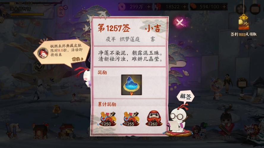 积分用于解锁和购买精华商店的物品。每天获得积分有一定次数的限制。*随着活动的进行,世界地图会刷新出'血月梦境'。挑战'血月梦境'可获得'月之陨',用于强化式神在活动期间的各项能力。*活动结束后,活动入口仍将开启直至4月10日维护前,期间可在精华商店兑换奖励。