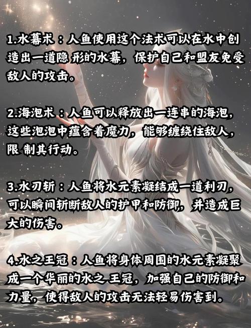 命中对手可以获得祝福buff,下次释放技能消耗2层祝福buff可以获得额外的治疗效果;技能2:速连续跳跃4次并创造水域,为附近友军提供免疫减速、移速攻速加成。敌人变成小鱼唱出歌声让小金鱼恢复海兽形态将目标吞食。小金鱼可以为队友提供鼓舞效果,提升治疗以及护盾。人鱼公主在这个水域中无视阻挡。