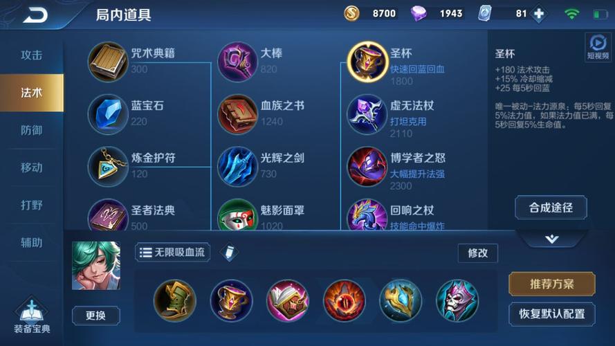 〖贰〗、食人鱼吸血流出装 浴火之怒、影忍之足、极寒风暴、痛苦面具、噬神之书、不死鸟之眼。召唤师技能带惩击,不然出不了浴火之怒。这套出装能抗法术伤害也能抗物理伤害,而且输出不低,回血也是相当恐怖。红莲斗篷、不死鸟之眼、极寒风暴、噬神之书、贤者之书、暴烈之甲。