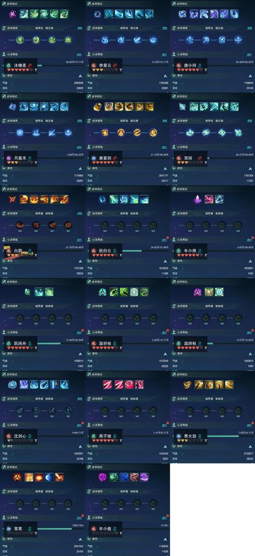 〖肆〗、魔睺罗伽:内防、外防、暴抗、暴减、闪避、韧性、法力。紧那罗:内攻、外攻、暴击、暴伤、命中、穿透、法力。迦楼罗:生命、全攻、全防、暴伤、暴减、穿透、韧性。阿修罗、乾达婆、夜叉、龙神、天神(具体属性集与上述类似,分别对应不同的攻防和特殊属性组合)。