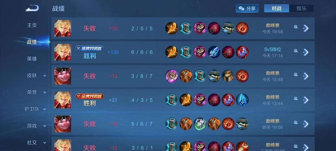 〖伍〗、王者荣耀保存并查看回放视频的操作步骤如下:保存回放视频 打开游戏:首先,需要打开手机中的《王者荣耀》游戏应用。进入个人主页:在游戏主界面,点击左上角的【头像】图标,进入个人主页。选取战绩:在个人主页中,点击左侧的【战绩】选项,查看历史对战记录。