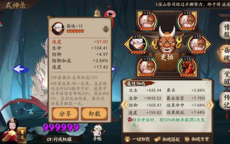 〖叁〗、综上所述,阴阳师游戏中一速的满速为159点,这是理论上的最大值,实际游戏中由于御魂获取的随机性和强化的不确定性,达到这一速度是非常困难的。玩家在追求速度时,需要综合考虑御魂的品质、主属性、副属性以及强化结果等多个因素。