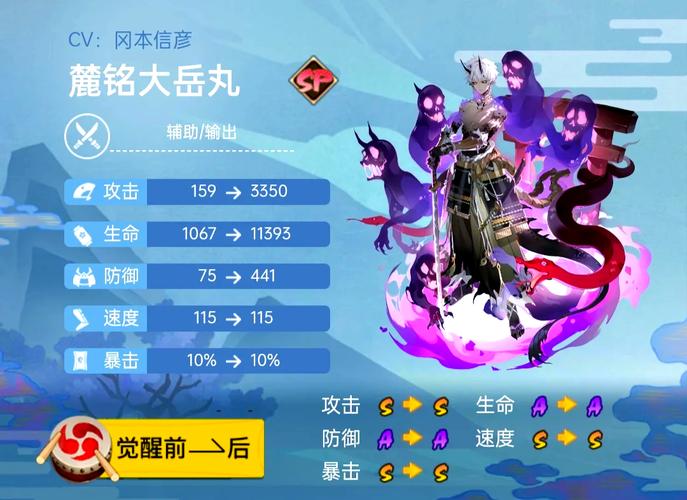〖肆〗、阴阳师SP麓铭大岳丸御魂搭配指南如下:核心御魂配置 “攻攻暴”套:这是以提升攻击为核心的配置方案。具体来说:2号位:选取攻击加成,以增强大岳丸的基础攻击力。4号位:同样选取攻击加成,进一步叠加攻击力,提升伤害输出。6号位:选取暴击伤害,以最大化暴击时的伤害值。