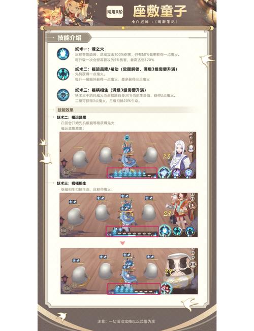 阴阳师座敷童子御魂搭配指南如下:核心御魂选取 招财猫:招财猫御魂能够增加额外的鬼火获取几率,非常适合座敷童子这种需要频繁提供鬼火的辅助式神。在需要快速释放大招的队伍中,招财猫能够显著提升队伍的效率和胜率。地藏像:地藏像御魂则侧重于提高座敷童子的生存能力。