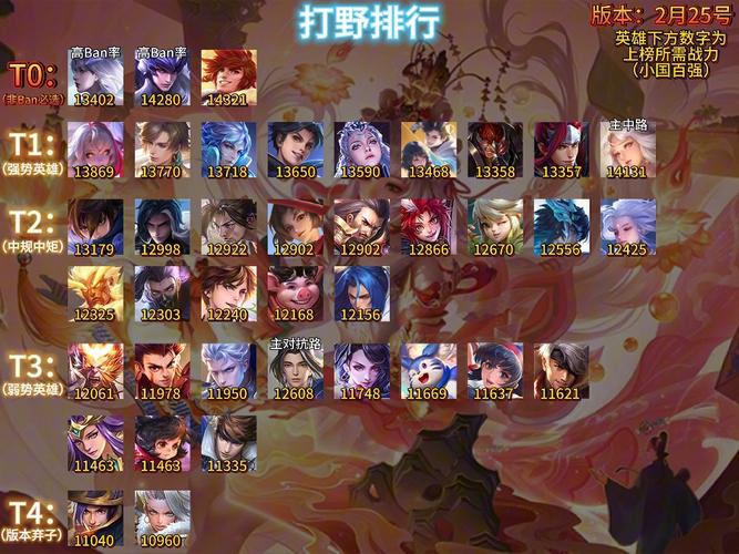 王者荣耀S25赛季上分英雄指南如下:打野位:澜:以其高爆发和灵活的位移能力著称,技能连招简单高效,团战中能轻松切入敌方后排,对脆皮英雄构成极大威胁。镜:拥有高机动性和持续输出能力,面对各种对手时都能占据优势,是打野位上的又一强力选取。