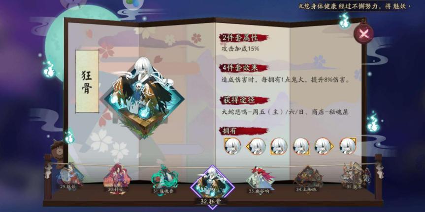 御魂搭配建议 推荐使用四件套:狂骨、心眼。破势御魂两件套:命中加成、暴击加成。2号位配置为生命加成、速度、攻击加成。4号位配置为攻击加成、效果命中。6号位配置为生命加成、暴击加成、暴击伤害。首领御魂选取荒骷髅、鬼灵歌伎。