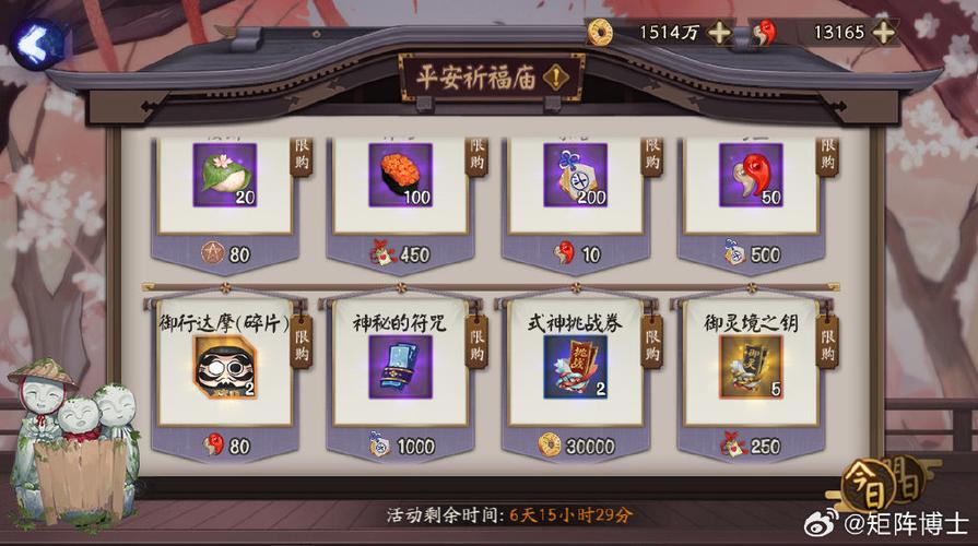 〖叁〗、阴阳师日和坊御魂搭配及培养攻略:御魂搭配 首选御魂:地藏像或稚魂:这两者都是增加生命值的御魂,非常适合日和坊这种以治疗为主的式神。地藏像可以提供额外的护盾,增加生存能力;稚魂则可以在受到致命伤害时复活一次,为队伍提供更多的保障。